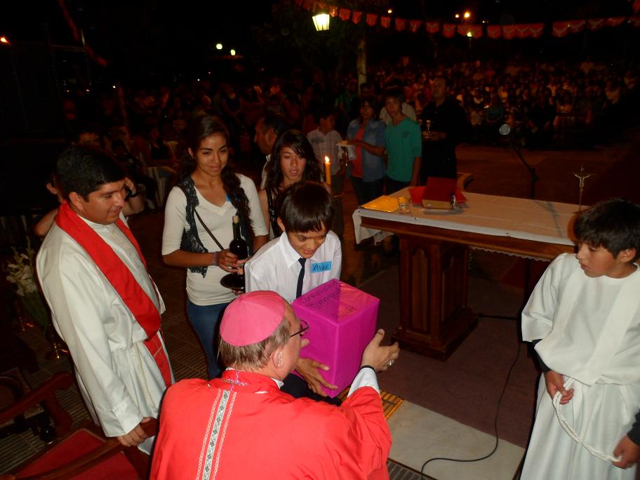 Finalizada la celebración eucarística, el P. Chaile agradeció al Obispo su presencia en nombre propio y toda la comunidad parroquial; como así también a los papás, a los catequistas y a quienes fueron confirmados; a las autoridades municipales y a todas las personas que colaboraron para embellecer con la ornamentación la emotiva ceremonia.