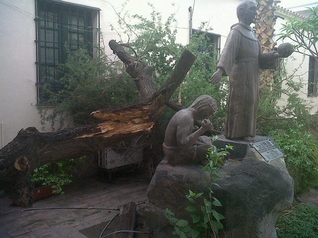 Sumado a todos los destrozos que se produjeron en viviendas y en plena vía pública, se cayó un árbol en el Museo Adán Quiroga.