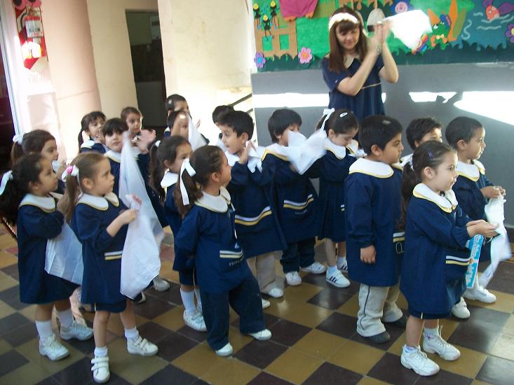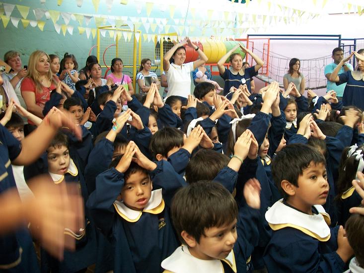 Luego entonaron las estrofas del Himno Nacional Argentino, y el Himno a la Virgen del Valle, interpretado por las docentes y acompañado por las voces de las madres presentes. Como todas las mañanas, le cantaron a la Virgen y rezaron un Padrenuestro, el Ave María, el Gloria y la oración al Angel Custodio.