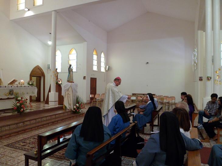 En la oportunidad, presidió la Santa Misa con la participación de docentes, en la capilla de la institución educativa, que durante cinco décadas viene brindando su servicio a la comunidad de Belén y alrededores.