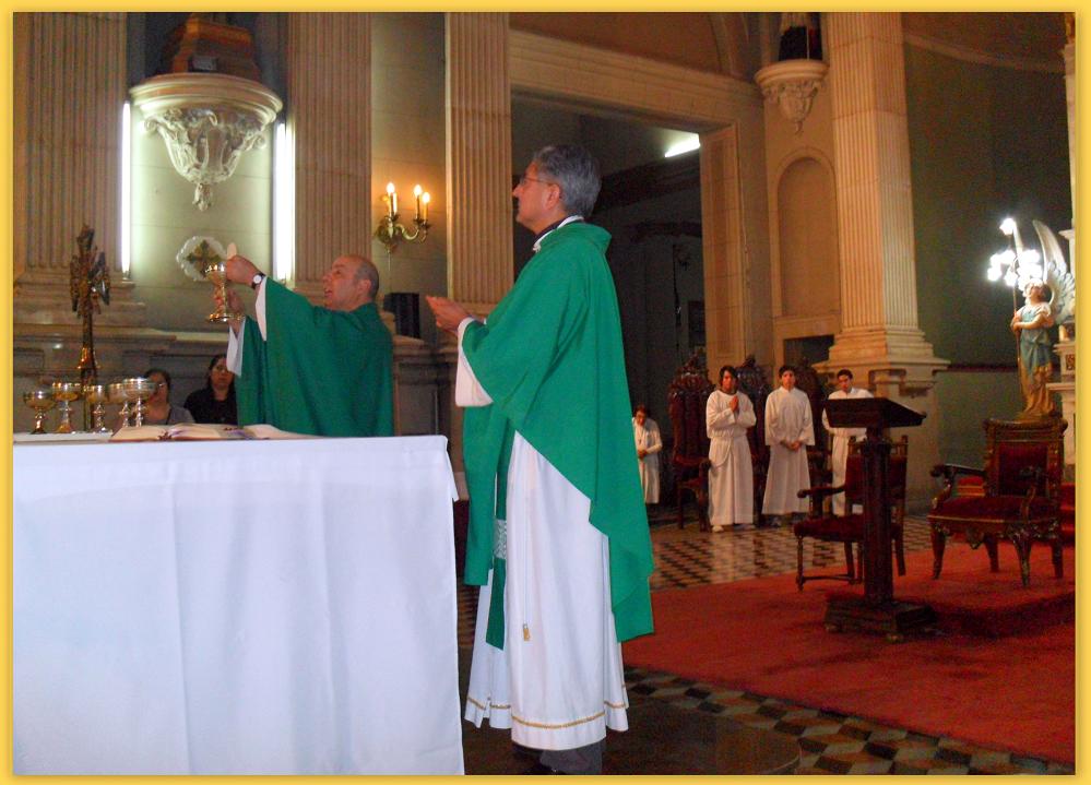 El padre Tapia proclamó el Evangelio y comenzó su prédica explicando el sentido del Mes de la Biblia y el aporte de San Jerónimo como estudioso y traductor de la Sagrada Escritura; al mismo tiempo que interpretó las lecturas del 20° domingo durante el año para concluir con su actualización en el mundo de hoy.