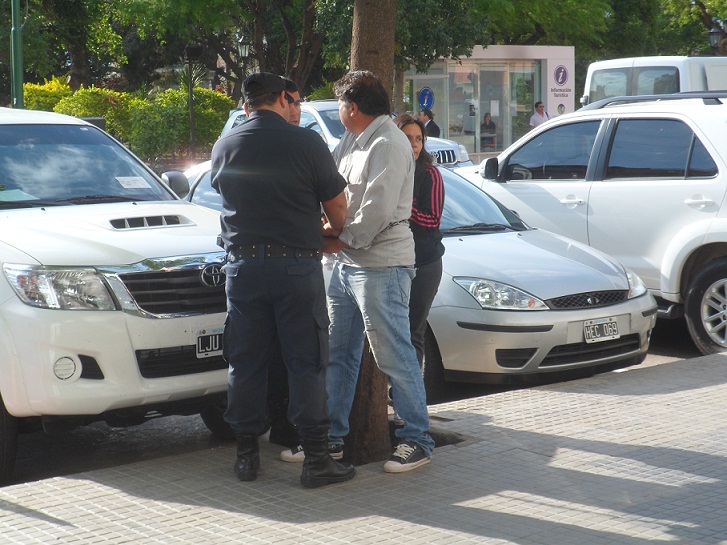 Esta mañana, a las 9 horas, Alejandro Pachao intentó encadenarse en un árbol que se encuentra sobre la vereda principal de Casa de Gobierno, lo que fue impedido automáticamente por personal policial.