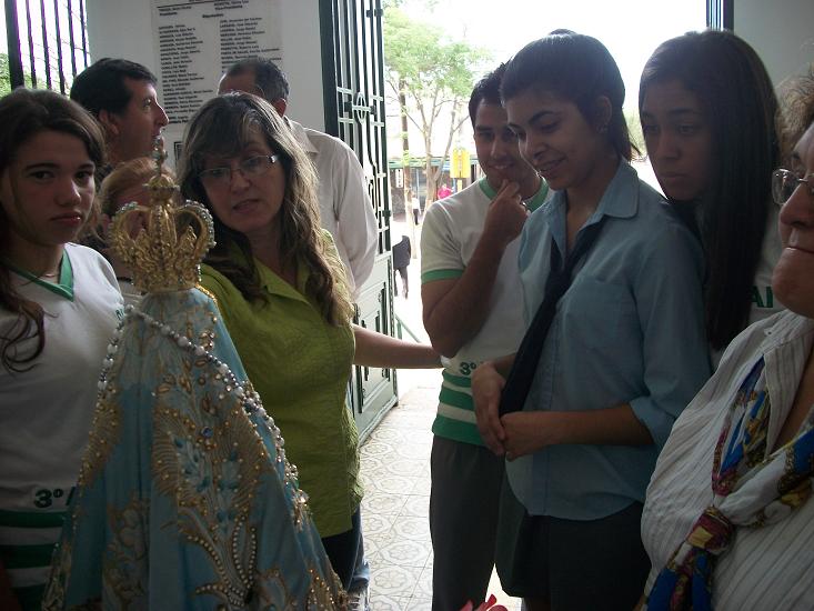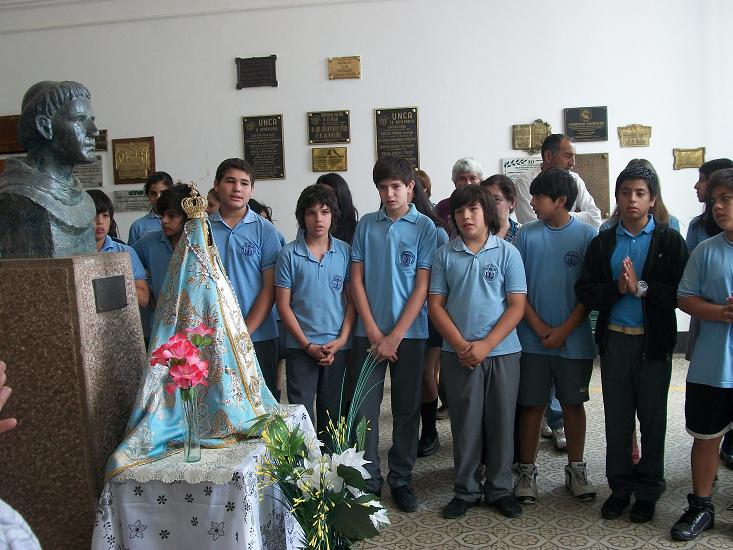 Está previsto que la Imagen de la Madre del Valle permanezca en la escuela hasta horas del mediodía, y los docentes organizaron momentos de oración con sus respectivos cursos para honrarla con el rezo del Santo Rosario a lo largo de la mañana.