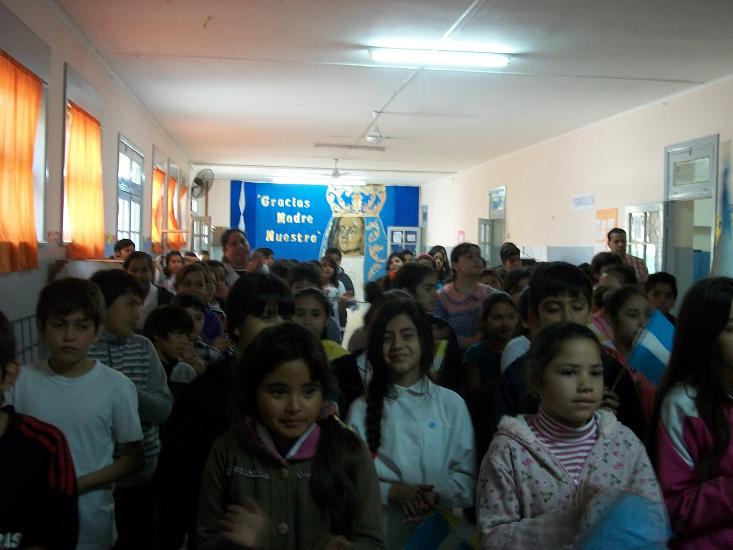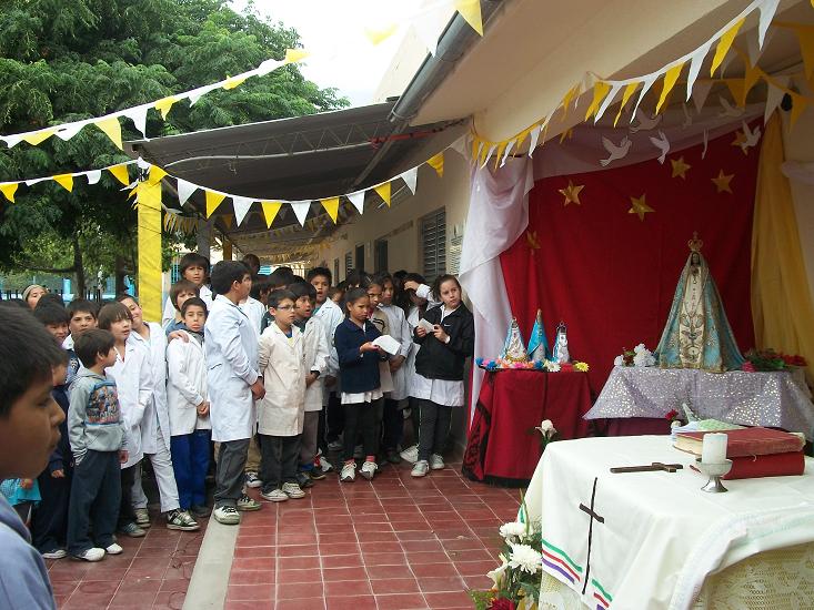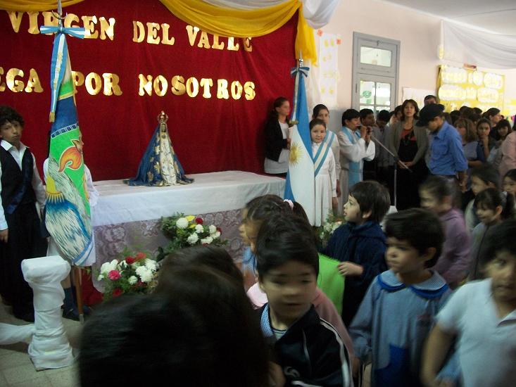 La escuela completamente engalanada con gallardetes y globos hizo escuchar el Himno de la Virgen del Valle varias cuadras a la redonda, acompañado de los aplausos y vivas de los niños con sus maestras. La jornada comenzó con una celebración de la Palabra a cargo del Diácono Horacio Machado, y están previstas distintas actividades para agasajar a la Madre del Valle.