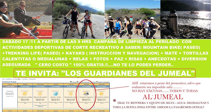 La cita es para este sábado 17, el lugar de encuentro será en el dique El Jumeal, la hora estipulada para el inicio de las actividades será a partir de las 9 horas.