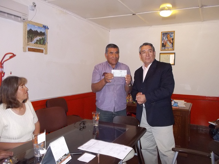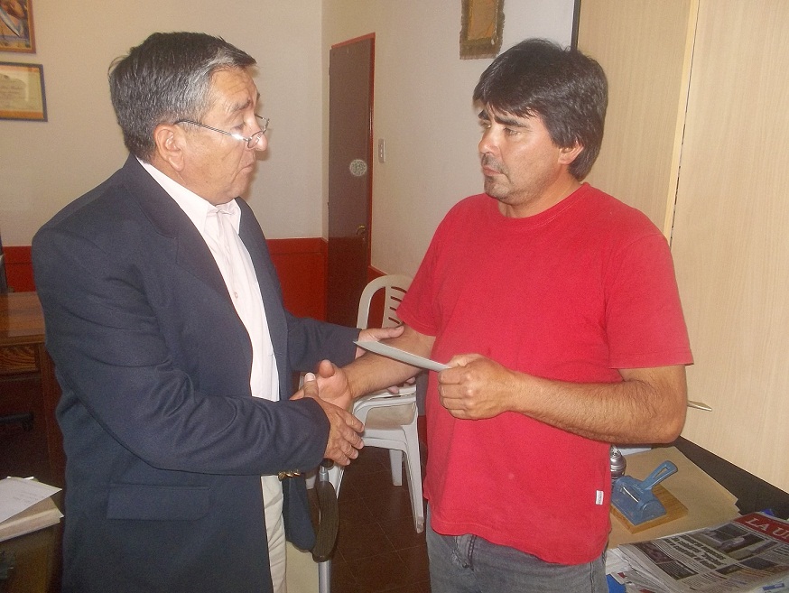 Seguidamente, el intendente realizó la entrega de un subsidio a la cooperativa de riego El Labrador, de la localidad de Palo Seco, como parte del financiamiento de los trabajos de instalación de la bomba para riego, para el mencionado lugar.
