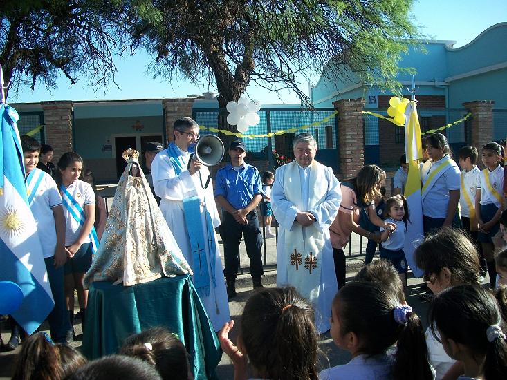 En la jornada de hoy visitó el Colegio Nuestra Señora de Guadalupe, en la ciudad de San Isidro, departamento Valle Viejo, donde fue recibida por los más pequeños del Nivel Inicial, acompañados por sus maestros y el Cura Párroco, Pbro. Julio Avalos, frente a la Ermita donde recibió veneración hace siglos.
