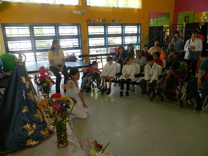 De cara a la preparación de las Festividades Marianas, La imagen de la “Morena” del Valle fue recibida por su titular, Lic. Mariela Vásquez, el subsecretario de Planificación y Gestión en Salud, Dr. Ángel Villagra y todos los trabajadores del organismo. También se sumaron, alumnos y docentes de la Escuelita del Lisiado.