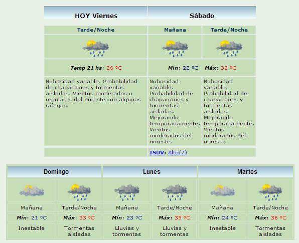 El Servicio Meteorológico Nacional prevé para este fin de semana altas probabilidades de chaparrones y tormentas. Igual las temperaturas máximas serán altas, y podrían llegar a los 36°. Conozca cómo estará el tiempo en los próximos días según el pronóstico extendido.