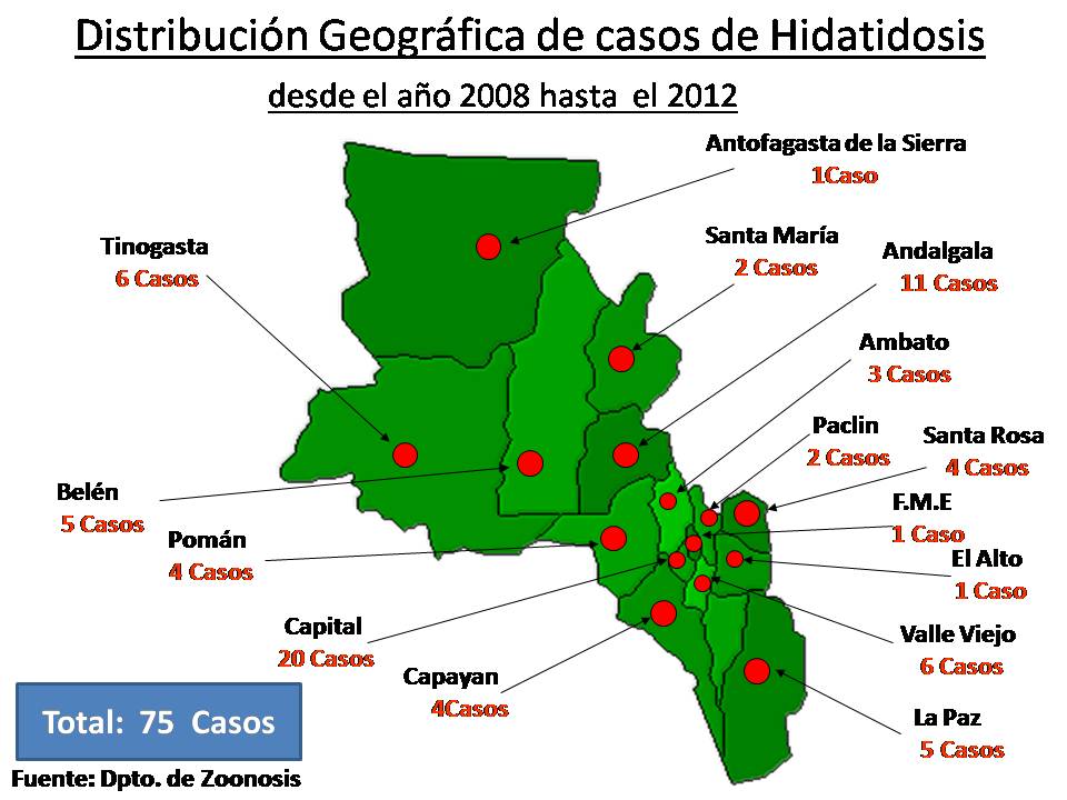 En las jornadas se presentó el programa de hidatidosis de la provincia de Catamarca que lleva adelante el Departamento de Zoonosis, donde se registran todas las personas afectadas por la enfermedad que son enviadas por los médicos de entes privados y oficiales para que el departamento les entregue la medicación especifica que es el Albendazol (antiparasitario especifico) en forma gratuita.