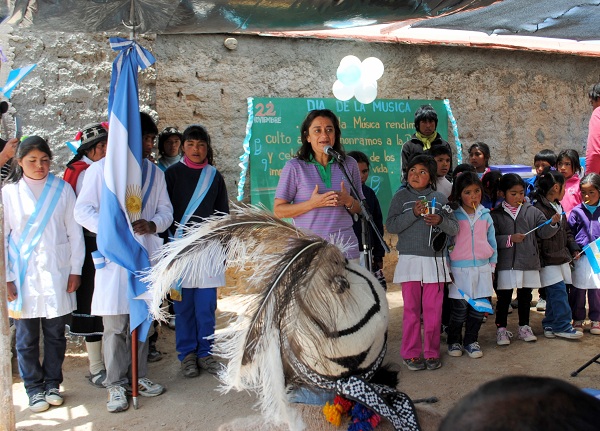 Luego se dirigió particularmente al cacique (Bernardo Gutiérrez), para decirle que “tenemos que preservar nuestra identidad, nuestra cultura, nuestras costumbres. Este saludo de agradecimiento a la Pachacamama para que nos acompañe, que nunca se pierdan. Que sepamos que cuidando la naturaleza, cuidando nuestro entorno también le estamos agradeciendo a Dios, que sigamos preservando nuestras danzas y nuestras vestimentas, pero al mismo tiempo nos integremos”.