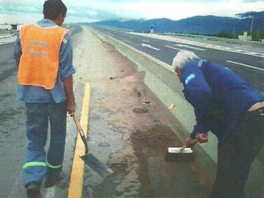 Las tareas de limpieza se realizan a mano, especialmente cuando deben recogerse áridos y material de banquina que se deposita en la calzada arrastrada por el viento y, también, por usuarios que utilizan las banquinas para “cortar” las curvas.