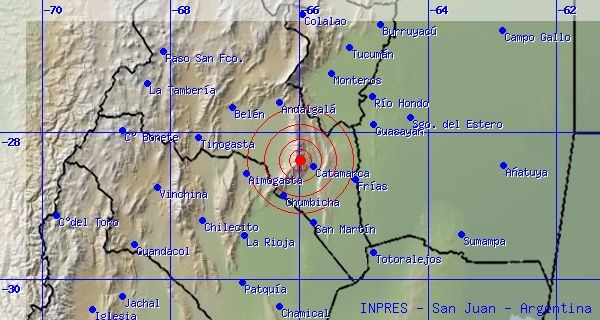 El epicentro se encuentra a 25 Km. en dirección noroeste de la ciudad de San Fernando del Valle de Catamarca.