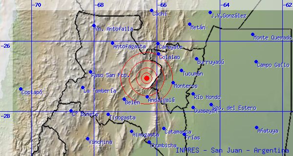 Esta mañana a las 08:42:26 se registró un sismo al norte de la ciudad de Belén. El Instituto Nacional de Prevención Sísmica confirmó que fue de 3.8 de magnitud en la escala de Richter, a una profundidad de 86 kilómetros.