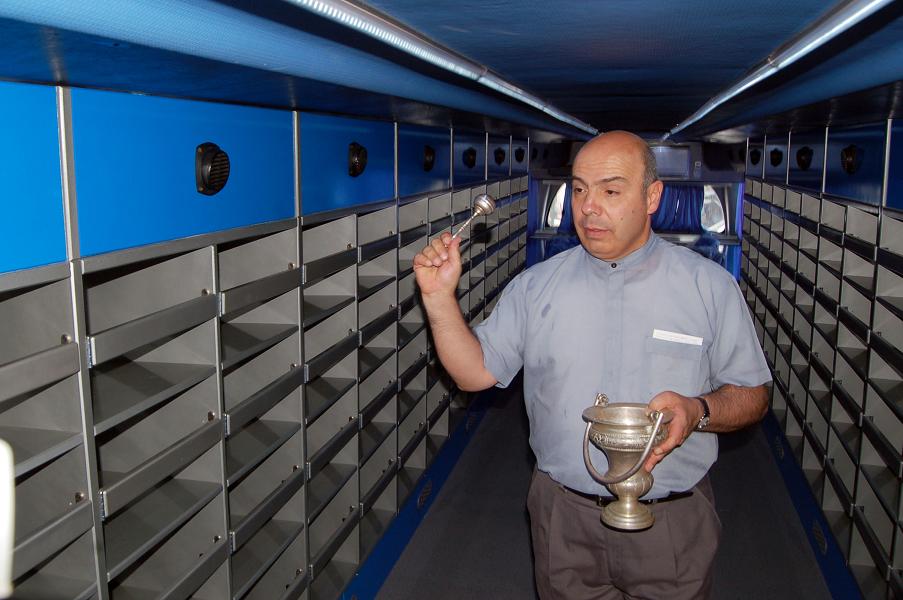El presbítero Julio Quiroga del Pino, realizó la bendición de la flamante biblioteca móvil, y luego las autoridades recorrieron el vehículo que cuenta con dos plantas, equipadas con bibliotecas para más de 10.000 libros educativos, que irán divididos por secciones. Tiene además una sala de lectura con sillas, para que los chicos puedan sentarse a consultar los materiales, un equipo de aire acondicionado y un sector de informática con conexión wi fi.