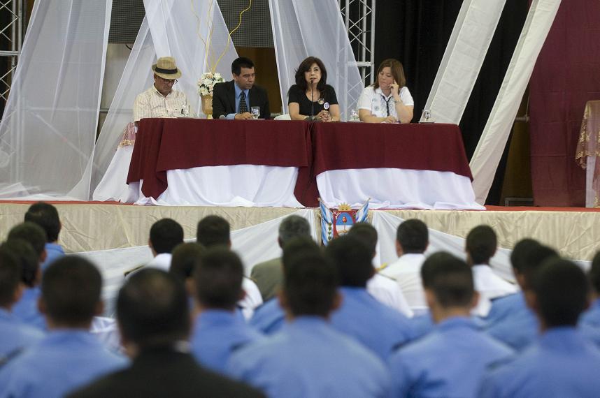 Luego de la reunión con Corpacci, las representantes de la Asociación Civil Madres del Dolor se trasladaron hasta las instalaciones del Predio Ferial Catamarca para brindar una disertación destinada a los trescientos agentes de policías que recientemente egresaron de la Escuela de Cadetes y que fueran incorporados a la fuerza de seguridad, en la cual se abordaron diferentes temáticas que se encuentran vinculadas a la actividad policial y su incidencia en la comunidad.