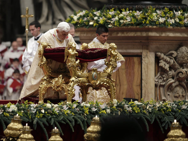 El papa hizo estas observaciones en la basílica de San Pedro del Vaticano ante varios miles de personas que asisten a la Misa del Gallo, que este año, como en los últimos tres, se ha adelantado dos horas a la medianoche para no fatigar al pontífice, de casi 86 años.