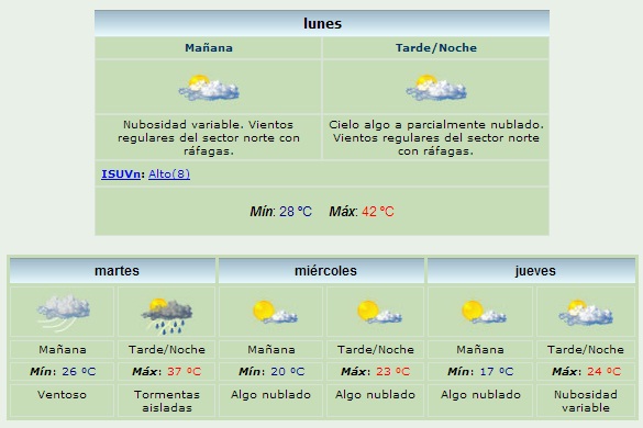 Para mañana martes, la máxima prevista es de 37º, con algo de descenso en referencia a la jornada de hoy, pero igualmente calurosa.