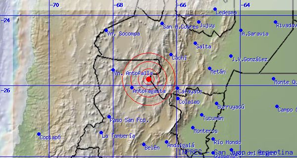 El movimiento telúrico, que fue imperceptible en esta Capital, tuvo una magnitud de 4.2° en la escala de Richter; se registró a una profundidad de 4 kilómetros, y tuvo su epicentro casi en el límite con la provincia de Salta, en proximidades del Salar de Antofalla.