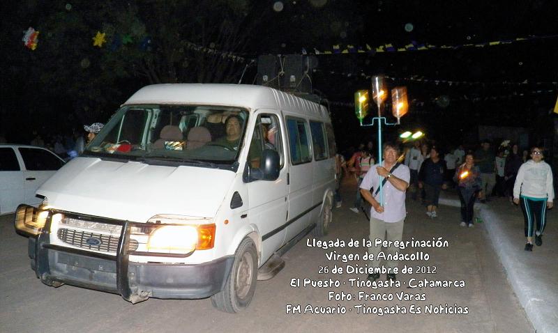 Como ya es tradicional, la noche anterior a la celebración central, los peregrinos partieron pasadas las 00.00 desde la sede parroquial en la ciudad de Tinogasta hasta El Puesto, adonde arribaron alrededor de las 5.30, luego de recorrer 17 kilómetros, pasando por las comunidades de Santa Rosa y Villa San Roque. Los jóvenes y adultos, que marcharon a pie portando antorchas, fueron acompañados por el Vicario Parroquial, Pbro. José Aguirre, quien durante el trayecto administró el sacramento de la Confesión.