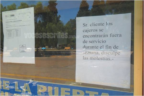 Aun no se restablece el servicio y crece el malestar de los clientes bancarizados. Desde el Banco se informó que se trabaja arduamente para tratar de brindar el servicio a la brevedad. Fuente: Voces Escritas.