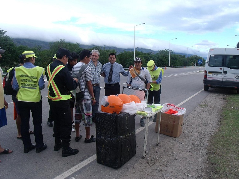 También, se hicieron entrega de cascos a motociclistas y folletería informativa; y en el marco del trabajo que viene efectuando la flamante Policía Caminera, se procedió al control de todo tipo de vehículos de transporte privado, de pasajeros y carga.