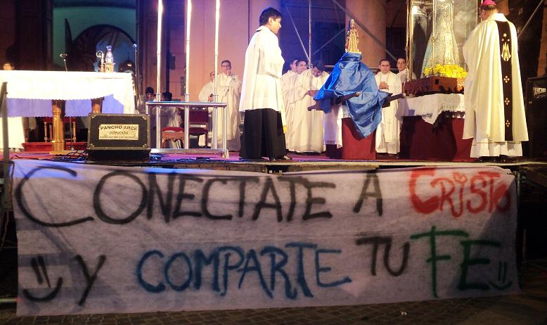 En su homilía, el Señor Obispo expresó: “Dirijo mi mirada hacia los jóvenes aquí presentes para que con generosidad y sin miedo respondan con el mismo sí de María para sumarse a la más noble de las causas que es la implantación del Reino de Dios, que es vida, verdad, justicia, amor y paz. Como dice el mismo Jesús: ‘La mies es mucha, pero los trabajadores son pocos’. Sí, queridos muchachos, el hambre de Dios, la búsqueda de sentido, la sed de vida plena, el ansia por una auténtica felicidad son enormes. Ustedes mismos son testigos de este drama actual. La solución se encuentra entre ustedes mismos: ustedes son los que espontáneamente deben ser los cirineos que ayuden a llevar la cruz de sus semejantes. ¿A qué otros se la podemos pedir?... No tengan miedo al encuentro con Cristo, puesto que Él es su mejor aliado, su mejor confidente, su mejor opción. Cristo jamás los defraudará,… se los garantizo,… más aún se los garantiza la misma Virgen del Valle”.