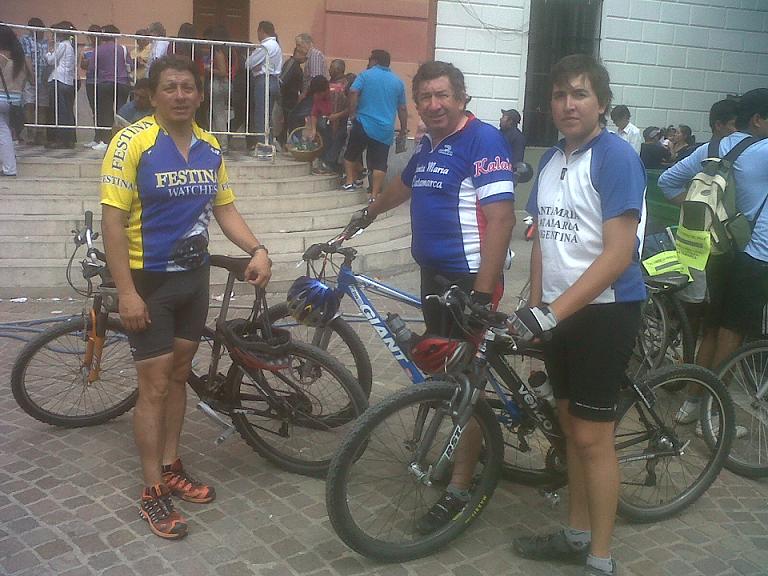 Nelson Cabezas junto a su hijo y acompañado por Ike Quiroga llegaron en perfectas condiciones a las 11 de la mañana a las puertas de la Catedral, donde un mundo de gente quiere agradecer a la Madre Morena.