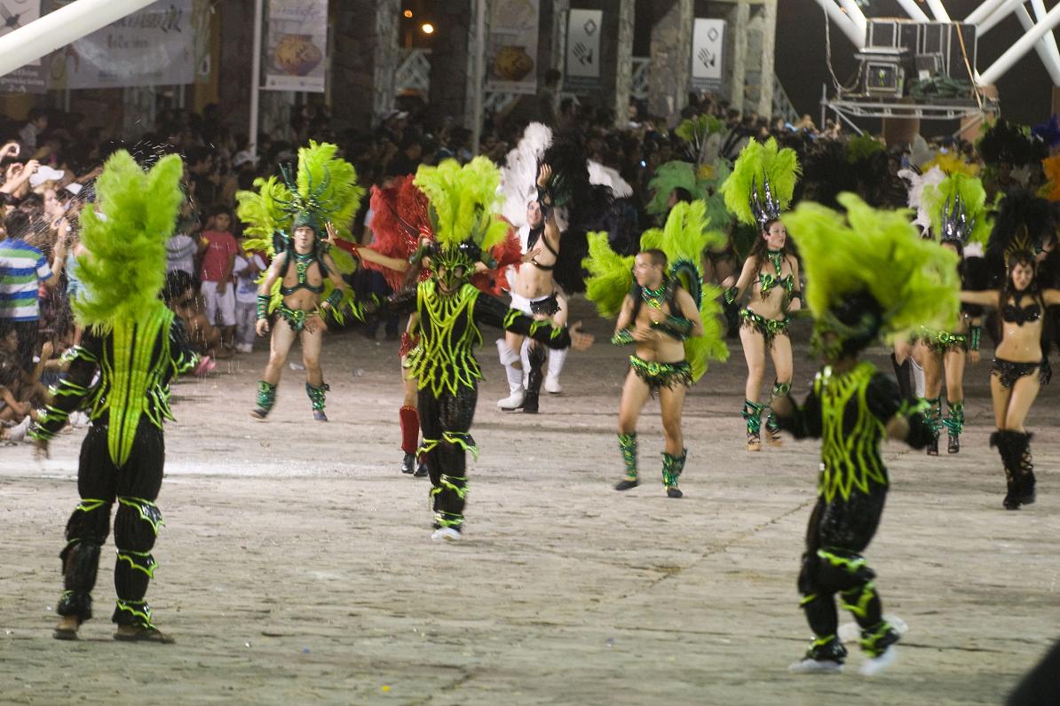 La explanada central del Predio se convirtió en un corsódromo y por allí desfilaron al ritmo de tambores, pero también de cajas y vidalas, los ballets y murgas de Capital y comparsas invitadas de Valle Viejo y Fray Mamerto Esquiú.