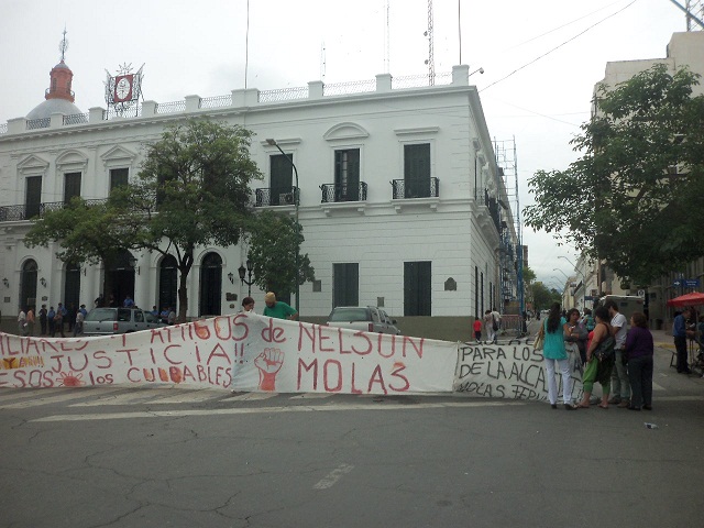 Este mediodía, los familiares y amigos de Nelson Molas, una de las víctimas de la tragedia de la Alcaidía, se manifestaron nuevamente con el corte de las calles Sarmiento y República.