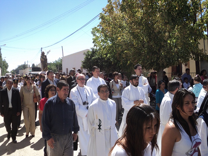Luego del izamiento de la bandera en la plaza Retamozo de esa localidad por parte del intendente León Mendoza, senador Antonio Díaz y el obispo Mariano Moreno las autoridades y el publico presentes se dirigieron hacia el santuario de San Roque para celebrar la santa misa a cargo del Monseñor Marino Moreno.