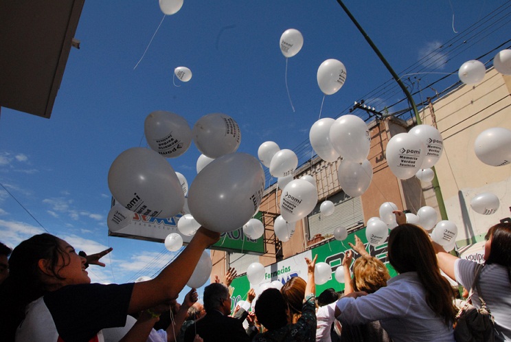 Para finalizar se invitó a las autoridades y al publico a la suelta de 200 globos impresos que recordaron a los 30 mil desaparecidos en la época de la dictadura militar.