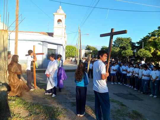 El colegio Nuestra Señora de Guadalupe llevo a cabo un Vía Crucis este viernes a las 8 de la mañana, causando asombro a los vecinos de San Isidro, por el horario de la recreación de la muerte y resurrección de Jesús, donde los protagonistas y actores fueron alumnos y el cuerpo docente. Vía crucis dio inicio frente la iglesia de San Isidro, con su punto de llegada en la Ermita.
