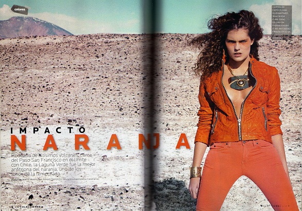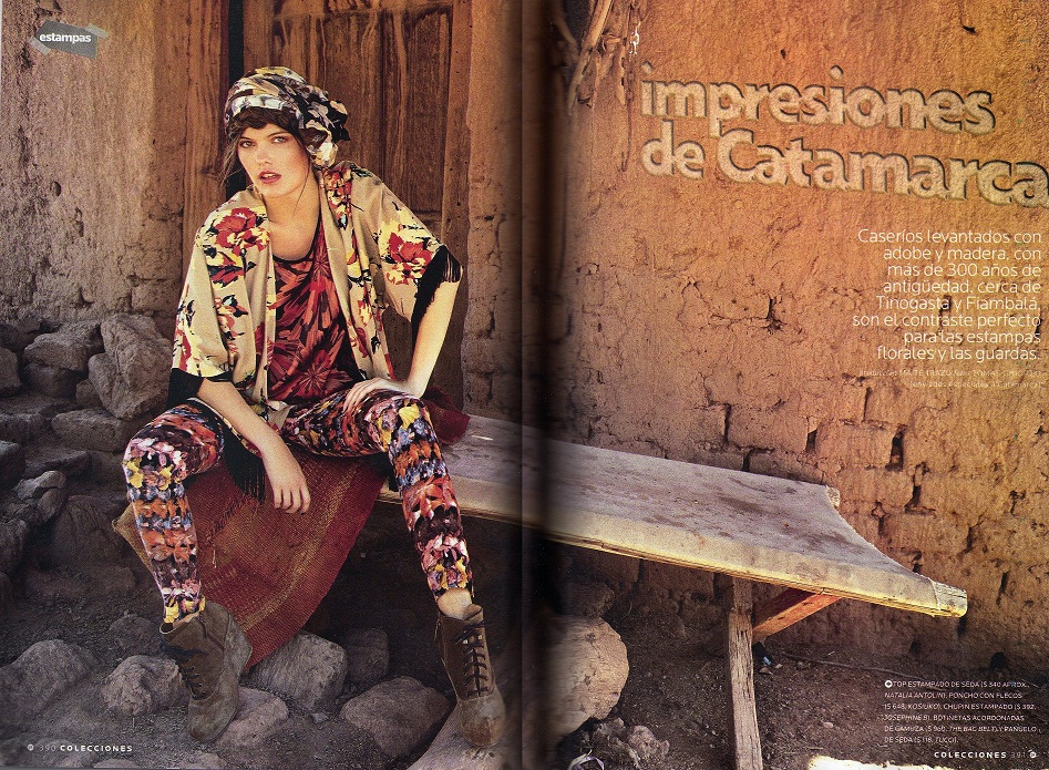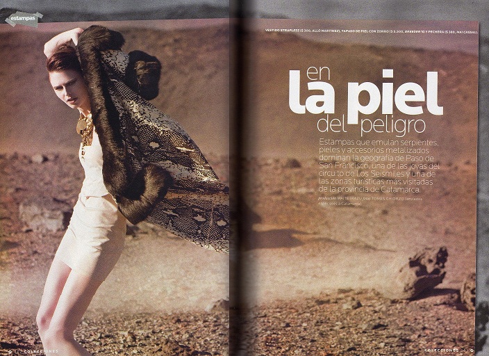 Las notas de las colecciones retratadas por el fotógrafo especializado en moda Tomas Ghiorzo están denominadas bajo los títulos “Impacto Naranja” como el color de la temporada y look muy modernos, “Impresiones de Catamarca”, con look étnicos y “En la piel del Peligro”, con estampas y texturas tipo pitón. Las locaciones elegidas fueron: Laguna Verde, Ruta del Adobe y Los Seismiles respectivamente.