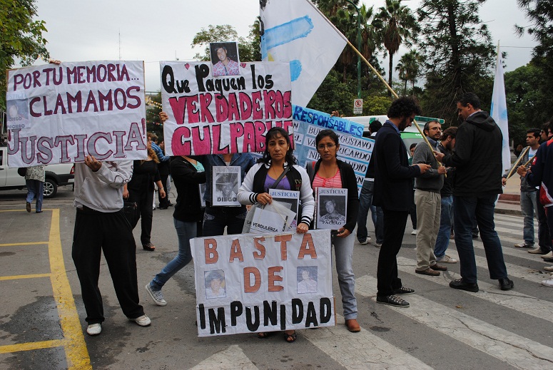 Paralelamente al juicio, los familiares de los desaparecidos de la última dictadura militar se manifestaron pidiendo justicia y condena para los represores.