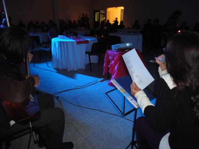 El Taller Literario “La Cueva” que dirige Celia Sarquís puso en escena la lectura y recitado de diversos poemas escritos por sus propios integrantes. Además el grupo “Gotas del Salar” y “Juan Lapacho” pusieron la música a la especial velada llevada adelante en medio de la ambientación en la que se recreó un bar o café.
