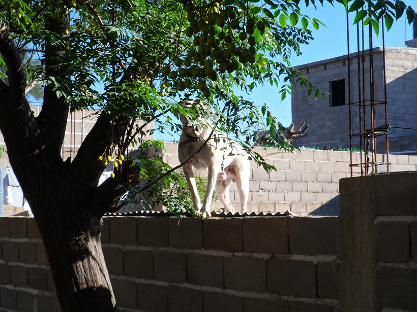 La fotografía denota en forma clara la posición de ataque del perro, a punto de saltar al vecino, lo que podría causar una desgracia. Como una constante queja del resto de los vecinos, ya habrían presentado numerosas denuncias en sedes policiales.