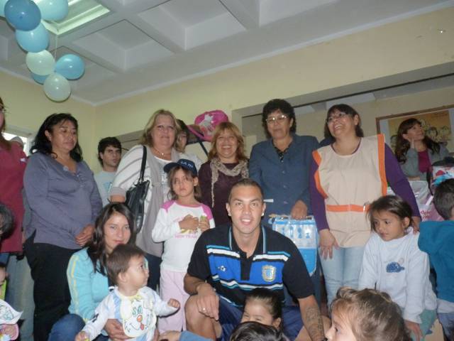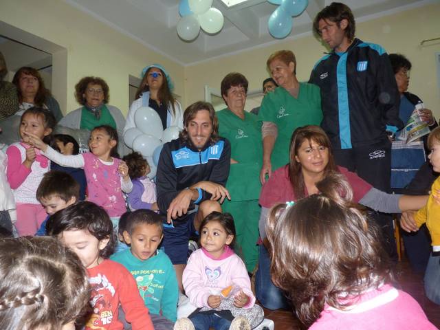 Los jugadores compartieron con los chicos que asisten a la institución y firmaron autógrafos al personal, en una verdadera jornada de festejo.