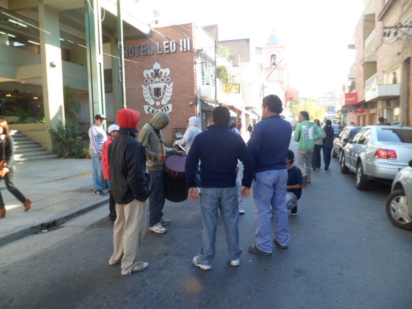 Un grupo de trabajadores de la empresa constructora Fratelli cortaron las calles céntricas cerca del mediodía reclamando el pago de salarios atrasados que los propietarios no cumplieron.
