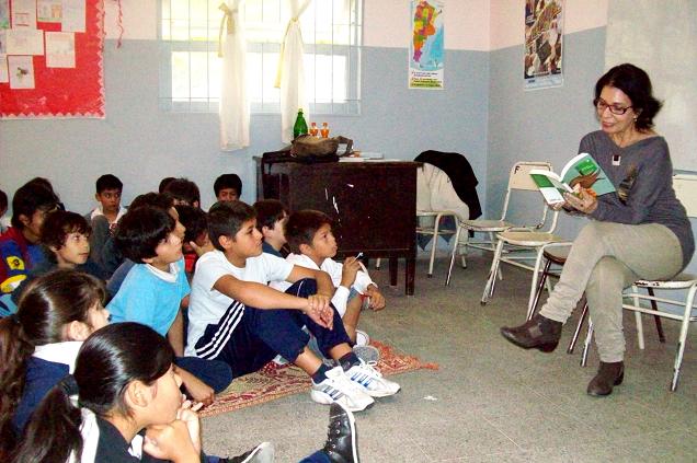 Ese mismo día, en horas de la tarde, la escritora se reunió con alumnos de 6° año de la escuela primaria Sarmiento-Moreno. Ante ellos leyó algunos textos y habló con los alumnos acerca de lo que significó la última dictadura militar argentina.