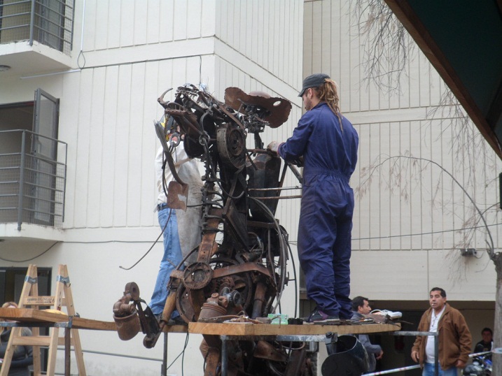 Lo llamativo de esta escultura, la cual estaría lista en esta semana, es que el material utilizado consiste en chatarra en desuso. Estos trabajos están bajo la responsabilidad de Israel Romero Peñaloza.
