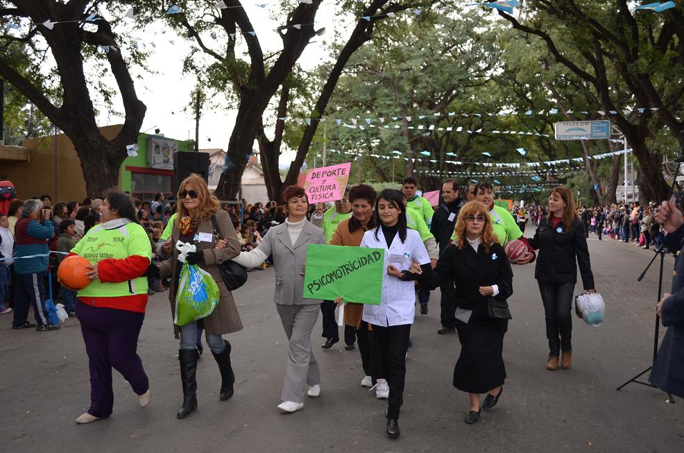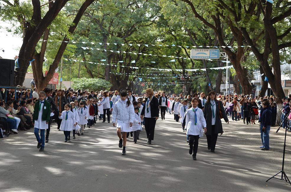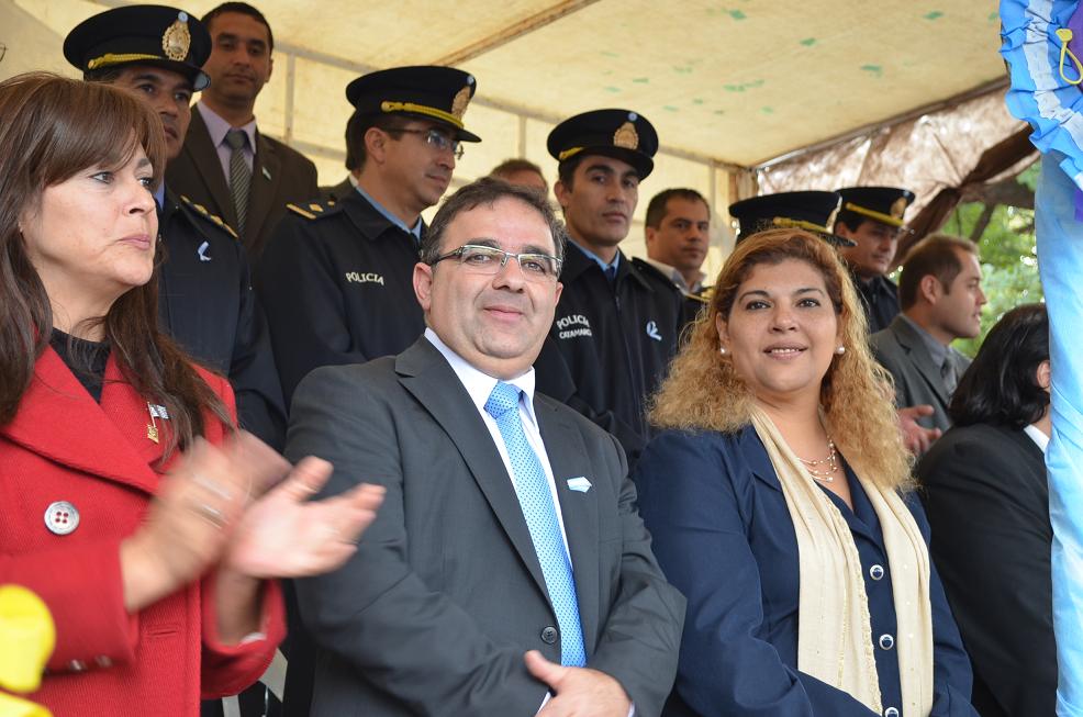 El acto central por la Revolución de Mayo estuvo presidido por la intendente Natalia Soria, acompañada por funcionarios de su gabinete, el senador departamental Domingo Olivera. En representación del Gobierno de la provincia estuvieron presente el secretario de Estado de Deportes, Maximiliano Brumec; el subsecretario de Asuntos Municipales, Daniel Lavatelli; además el intendente de la Municipalidad de la Capital, Raúl Jalil; su secretario de Gobierno, Gustavo Saadi; la diputada provincial, Verónica Mercado.