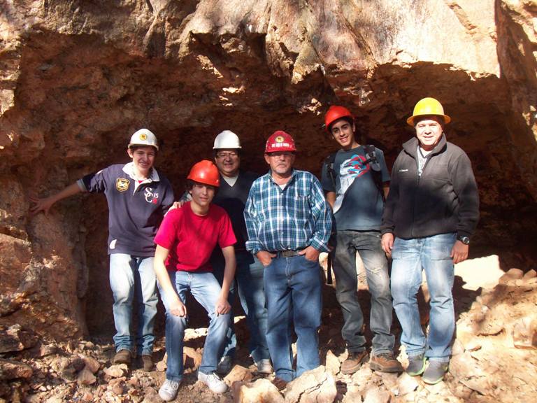 Los alumnos, Manuel Roncoroni, Leandro Togñola y Mauro Almaraz Nueva, fueron acompañados por el Ing. Ramón Suárez de la Dirección de Minería y el Ing. Gabriel Vega y el Arquitecto Simón Delgado de la Dirección de Fortalecimiento Institucional, recorrieron las Minas de La Aguada que en entre las décadas del ’50 al 70 producían la explotación de mica y caliza y su apogeo ocurrió a principios de los ’90.