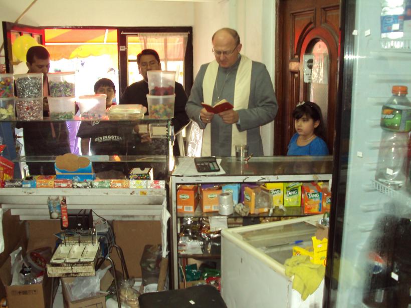 Antes de su llegada al templo situado frente a la plaza Tinkunaco, el Pastor Diocesano bendijo negocios y hogares del populoso barrios, saludando a vecinos, ancianos y niños.