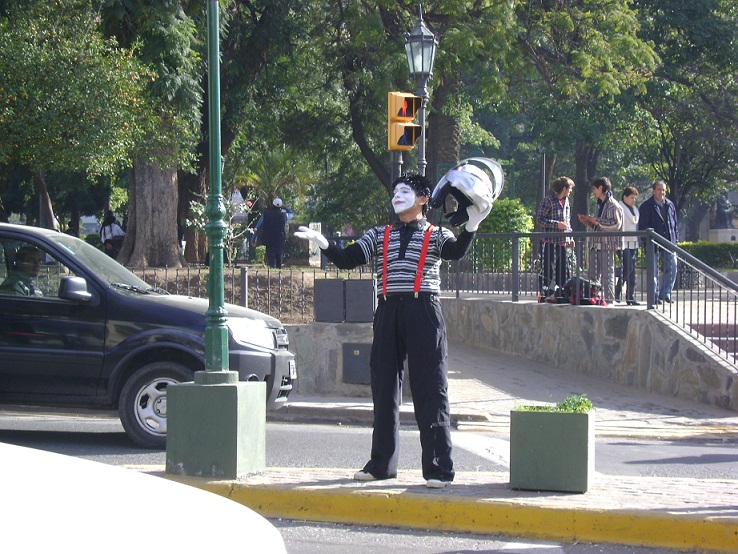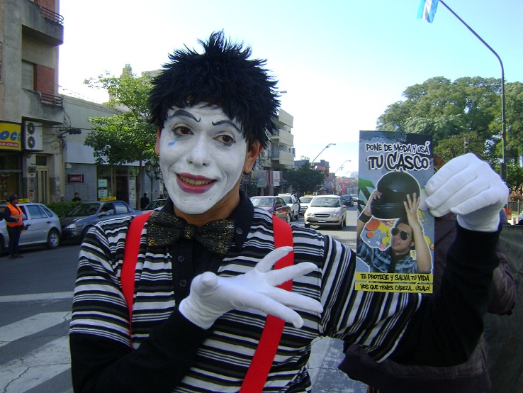 Por lo que se llevaron a cabo una serie de acciones con el objetivo de sensibilizar e informar a la comunidad sobre educación vial en establecimientos escolares, centros de salud, en el día hoy se puso en escena la actuación de un mimo en la vía pública, con la intervención en calles céntricas de la ciudad a los fines de hacer visible las situaciones y las conductas positivas y negativas para la seguridad vial.