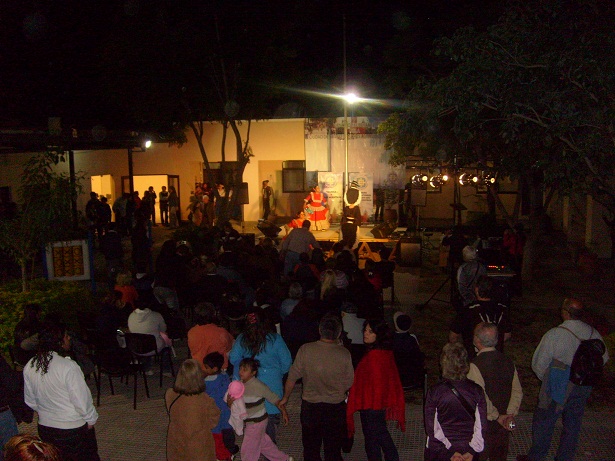 En la velada cultural se dispuso una pantalla gigante en el ingreso a la Plaza en la que los caminantes de la peatonal podían observar lo que ocurría en el escenario del Concejo.