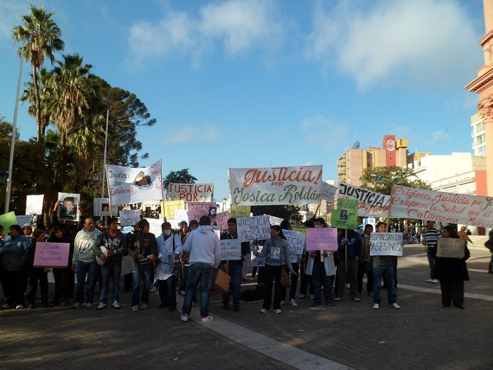Los familiares de Jésica Roldán junto a amigos, sumado a otras personas que aseguran haber sufrido casos de mala praxis y los integrantes de FAVIATCA se manifiestan con una marcha por las calles que rodean la Plaza 25 de Mayo.
