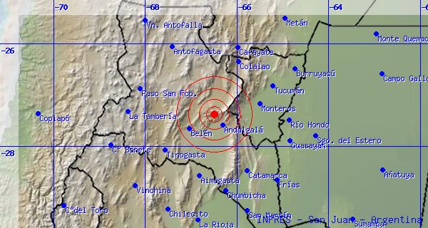 El Instituto Nacional de Prevención Sísmica (INPRES) informó que el movimiento telúrico se registró a las 14:07:36 a una latitud -27º 22 33.6\ y una longitud -66º 30 7.2\. La profundidad fue a 10 Kilómetros y la magnitud fue de 2.5° en la escala de Richter.