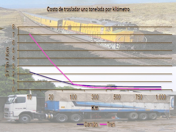 En la Argentina, tomando una distancia promedio de 500 kilómetros, se arriba a un flete de tren que es un tercio menor del vial. Si se duplicara la participación del ferrocarril en el total transportado, los ahorros serían muy interesantes.