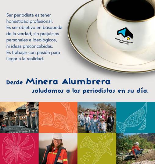 Con motivo de la celebración del Día del Periodista, el Ministro de Obras Públicas, Ing. Ruben Dusso, desea saludar a todos los trabajadores del área, y desearles muchas felicidades,y recordarles que el Ministerio de Obras Públicas esta trabajando diariamente para hacer mas óptima la relación del Ministerio con la prensa en general. Desde ya, muchas gracias. Ministerio de Obras Públicas de la Provincia de Catamarca.